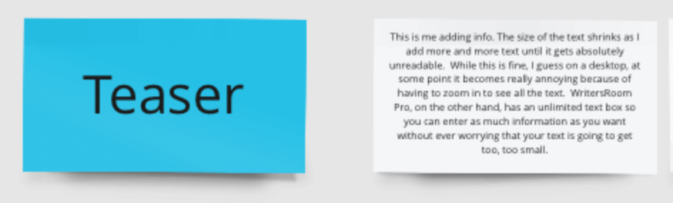 WritersRoom Pro - Default text size is the same size as writing on an index card with a Sharpie.