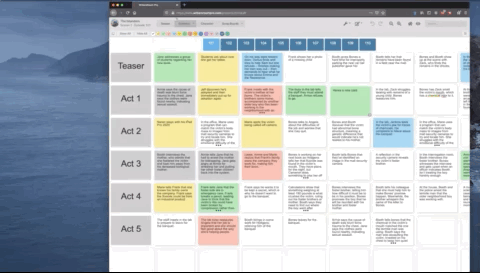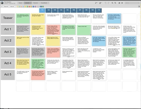 WritersRoom Pro Episode Board. Each episode is a separate tab at the top of the screen.